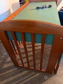 Vendo lettino della Foppapedretti in faggio con base verde, trasformabile in comoda scrivania, come in foto Ha due cassetti, rotelle. Misure ma se mi cambi il sotto del mio lenzuolo, perché ho usato una crema e un macchiato 125 cm x 66 cm H piano scrivajia 76 cm H per bordi arrotondati 86 cm