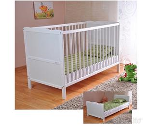 Lettino in legno per bambini con materasso ad altezza regolabile in 3 posizioni. Utilizzabile come culla con 1 o 2 sbarre e, come da foto, anche come lettino basso senza sbarre. Usato poco ed in ottime condizioni. Materasso incluso praticamente nuovo. Consegna a mano.