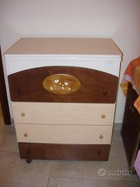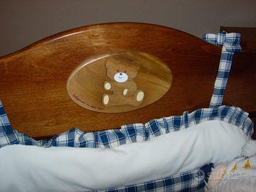 VENDO LETTINO E FASCIATOIO DI ALTISSIMA QUALITA'. Lettino Azur modello orsetto, in legno massello, ampio cassettone a scomparsa inserito sotto la culla, sponde regolabili in altezza, guaine di protezione, basi curve per usarlo come dondolo. Incluso set che comprende i cuscini laterali paracolpi ed il piumino abbinato. Il lettino è dotato anche di struttura smontabile per la tenda di copertura anti zanzare (inclusa). Il lettino verrà consegnato smontato ma è facilissimo da montare. Incluso fasciatoio con cassettiera in legno massello della stessa marca, modello e colori con 4 comodi cassetti, bagnetto all'interno con tubo di scarico acqua, ampio cuscino imbottito ed impermeabile da inserire sopra, ruote con freni per un facile trasporto in casa. In omaggio orsacchiotto in foto e altro...a sorpresa. Prezzo non trattabile.