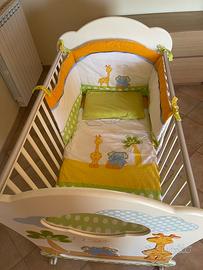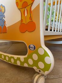 Culla, lettino marca Pali mod. Gigi e Lele. Culla con cassetto sottostante, (completa di materasso e paracolpi originale con stesso tema). Completa anche di piumino e copripiumino con stesso tema. Struttura in faggio massiccio.