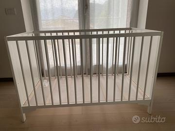 Vendo lettino ikea (120 x 60 cm), come si vede da foto ha qualche piccolo graffio, ma nel complesso e’ tenuto molto bene . Insieme vendo anche il materasso utilizzato sempre con il suo copri idrorepellente (mai sporcato perche il mio bambino utilizza ancora il pannolino). Ritiro zona Riva del Garda, Arco e Tenno. No spedizione