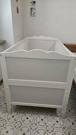Lettino bianco Ikea mod. SMAGORA mis. 140 x 80, con materassino foderato. (insieme regalo piumino trapuntato) Appena rovinato in un angolo (laccatura)