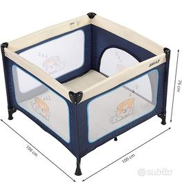 Bakaji Letto Lettino Culla Box Gioco da Campeggio Quadrato per Bambini ,pieghevole e trasportabile