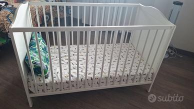 Vendo lettino culla bianco ikea, misure 60x120, possibilità di alzare la seduta a meta lettino ; si può anche abbassare un'azione sponda del letto, includo materasso baby fatto da artigiano misure 60 x 120 h 12cm di gomma ,pulito, usato pochissimo , si valuta consegna su Roma Sud