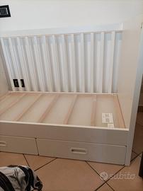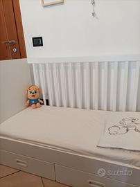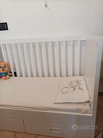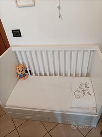 La base del lettino si può montare a due altezze diverse. Si può smontare una sponda quando il bambino è abbastanza grande da salire e scendere da solo dal lettino. Sotto il lettino ci sono due cassetti spaziosi, perfetti per tenere in ordine i giocattoli o la biancheria di ricambio. Solo consegna a mano - zona Roma sud - Acilia