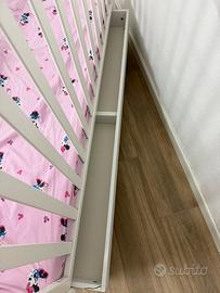 Vendo lettino / culla neonato/a Giordani colore bianco naturale - sponda regolabile - con cassetto. In omaggio materasso