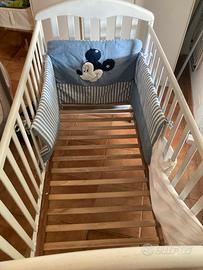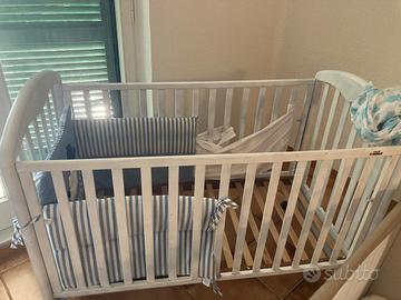 Vendo ottimo lettino culla neonato bambino utilizzabile sai dai primi giorni appena nato, fino ai 2/3 anni usato in condizioni come da foto. Struttura interamente in legno, dimensioni materassino 120x60 cm H 90cm, doghe interamente in legno, facilmente smontabile in pochissimi minuti. Lettino con sponde in legno colore bianco verniciato. Preferibile ritiro a mano su Anzio. Contattatemi per ulteriori informazioni o altro.