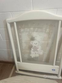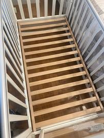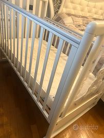 Lettino culla marca Pali rete a doghe con spondina regolabile cassettiera e ruote Completo di materasso.