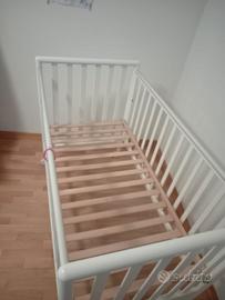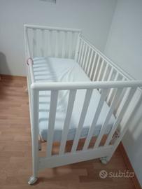 vendo lettino bianco come nuovo in legno con bandine laterali abbassabili e rotelline con fermo. cassetto nella parte inferiore sotto la rete. disponibile la visione