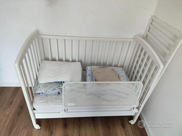 Lettino Culla per bambini con sbarre per bambino/a completo di materasso, coprimaterasso lenzuola e piumone.