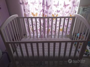 Un tenero lettino dalle forme arrotondate per il tuo bimbo! Con una solida struttura in legno bianco, questo grazioso lettino è dotato di una spondina regolabile in altezza; il pannello della rete porta materasso è realizzato in multistrato di pioppo, mentre nella parte inferiore si trova un praticissimo cassetto estraibile, che potrà contenere tutti i corredini di ricambio. Questo letto inoltre è facilissimo da spostare, grazie alle quattro ruote piroettanti, due delle quali sono dotate di freno..