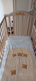 Lettino Mibb con comomodo cassetto sottostante + set coordinato composto da paracolpi, coperta a sacco, copricuscino, imbottitura invernale