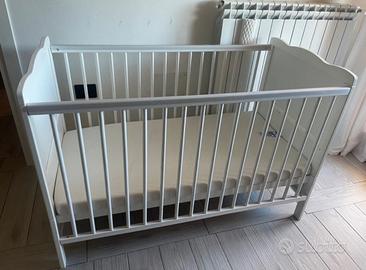 Come nuovo. Usato pochissimo. Materasso mai usato. Sbarre laterali fisse. Misure 125x66x85A.