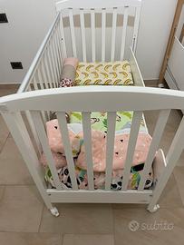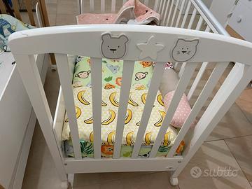 Lettino a cancelletto Cuoricini acquistato nel 2021 completo di materasso e cassettiera contenitore sotto il letto. Colore: bianco.