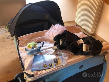 Completo di scatola originale, manuale istruzioni e di tutti gli accessori: fasciatoio, tasca portaoggetti, kit doppia altezza, tasca apribile con zip sul retro, borsa da trasporto, capottina e zanzariera.