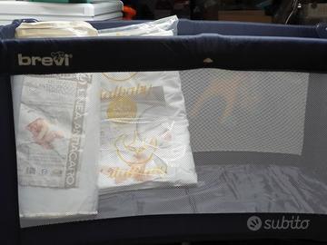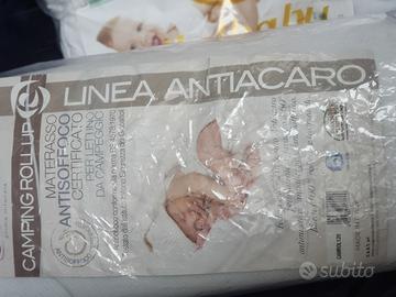 Lettino da campeggio Brevi compreso di materassino antisoffoco e piumino (utilizzabile anche per lettino normale). Tenuti bene