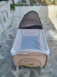 vendo per crescita propri bimbi lettino da campeggio CAM Teddy Bee Daily Plus come da foto in ottime condizioni e perfettamente funzionante, acquistato nel 2022 al prezzo di 120€, completo di base che funge anche come involucro con maniglia, tettuccio antisole e doppia zanzariera. Il lettino si apre facilmente ed aperto misura 125x65x80h e si può collocare anche in casa fungendo da box. Si richiude altrettanto facilmente con misure che diventano 21x21x78h per portarlo comodamente in viaggio. Contattatemi pure per qualsiasi informazione in merito. Zona di ritiro Roma Settecamini. Spedizione in tutta Italia +20 euro