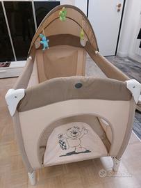 Lettino da campeggio unisex per bambini in ottime condizioni, completo di materasso, fasciatoio e tettuccio parasole.