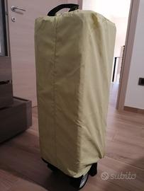 E' dotato di ruote, con freni di stazionamento e ha una borsa porta-lettino.