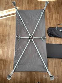 Lettino da campeggio chicco in buone condizioni ad eccezzione di due segni di usura nei punti sottostanti agli snodi che ne permettono la chiusura (vedere foto)