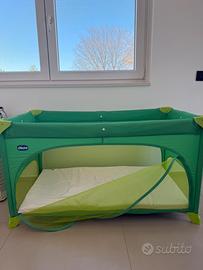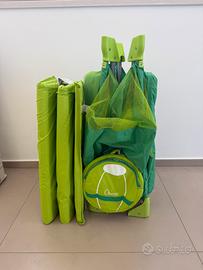 Vendo lettino da campeggio Chicco easysleep con materassino in poliurerano aggiuntivo. Apertura laterale con cerniera. Dotato di contenito per pigiama.