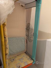 Vendo lettino da campeggio in condizioni ottime, comprende un cuscino, materasso e imbottitura laterale, include inpltre zanzariera. Potete contattarmi per ulteriori info o visione.