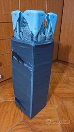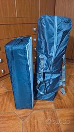 Il kit comprende una borsa da viaggio e un fondo irrigidito su cui è possibile appoggiare un materassino con le dimensioni standard di 120 cm x 60 cm.