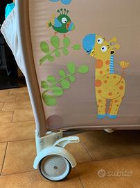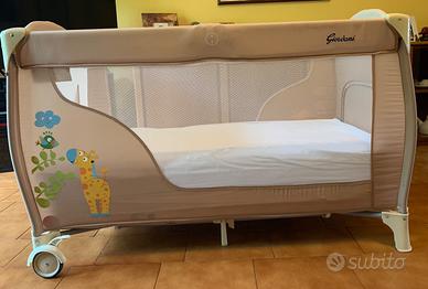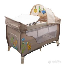 Vendo lettino da campeggio marca Giordani modello Jungle Friends. Il lettino è corredato di 3 materassi (2 altezza 5 cm + 1 altezza 15 cm), fasciatoio, zanzariera, copertura con pupazzetti, aste per il montaggio, borsa per il trasporto e libretto di istruzioni.