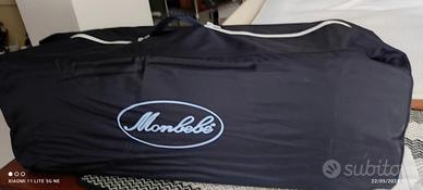 lettino da campeggio usato pochissime volte pieghevole, pratico da trasportare di colore blu marca monbebe