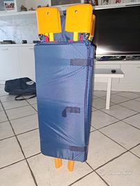 Lettino da campeggio "neonato". Blu, con due tasche laterali, con custodia.
