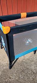 Lettino da campeggio usato poche volte. Ottimo anche come box. Compreso nel prezzo regalo anche un materassino extra altezza 10cm.