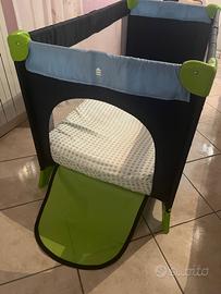 Vendo lettino da campeggio, con apertura a zip ( vedi foto) lettino: materasso standard no slim! Dotato di rotelle con freni!