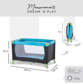 Montaggio e smontaggio rapidi: grazie al pratico meccanismo di chiusura, il lettino neonato Dream N Play si apre e si richiude facilmente in formato compatto (22 x 21 x 76 cm)