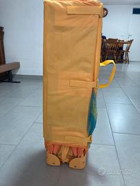 Vendo lettino pieghevole da campeggio per bambini dotato di apertura con cerniera laterale.