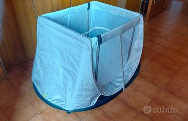 Lettino da viaggio comodissimo. Si monta facilmente e si richiude in pochi secondi. Comodo da trasportare e leggerissimo, pesa solo 4,9 kg (verificato).