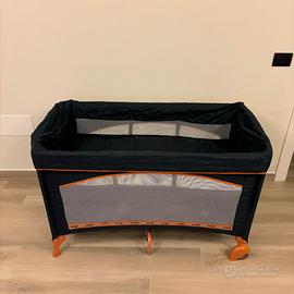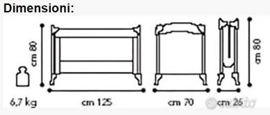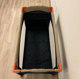 Lettino da viaggio dotato di pratica borsa con maniglie per agevolare il trasporto.