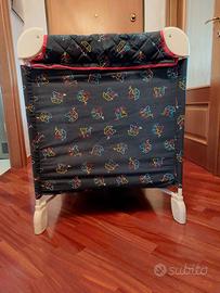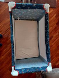 Lettino da viaggio dotato pratica borsa con maniglie per agevolare il trasporto. Rivestimento in tessuto nylon poliestere, 4 piedini antiscivolo per maggiore sicurezza e piedino di supporto centrale per una maggiore stabilità. 2 spondine in rete a maglia fine di sicurezza per un'aerazione ottimale consentono di tenere sempre sotto controllo il bambino. Fondo rigido, per sostenere al meglio la schiena del bambino, con imbottiture incorporate con base in nylon resistente. Meccanismo di apertura a scatto a innesto automatico rapido e facile, con doppia sicurezza contro le chiusure accidentali. Facile sistema di chiusura a ombrello per un minimo ingombro. 125L x 70l x 80H cm