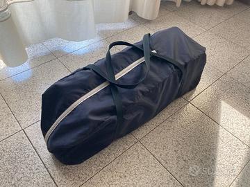 Lettino da campeggio Brevi in colorazione blu con finestre laterali in rete, comoda chiusura ad ombrello e borsa per il trasporto in dotazione.