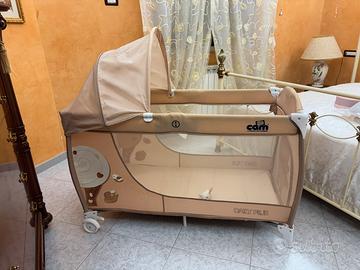 Il Lettino da viaggio Cam Daily Plus con set completo (lettino con kit doppia altezza, cappottina, tasca , zanzariera , fasciatoio e materasso 12 cm) “pari al nuovo” piu piumino sfoderante con immagine di orsetto