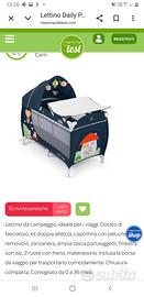 Vendo lettino da campeggio, ideale per viaggi della Cam Daily Plus, come da foto, completo di fasciatoio, kit doppia altezza, capottina con peluche, zanzariera, tasca portaoggetti, finestra con zip, materassino, ruote con freno. nuovo. usato pochissimo.