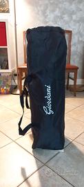 Lettino da campeggio o da viaggio della marca Giordani, ideale per chi ama viaggiare. Il lettino si piega su se stesso per occupare il minimo spazio possibile. Permette di far stendere il bambino su due livelli così da non doversi chinare troppo per raggiungere il bambino, specialmente se piccolo. Il lettino ha anche due grandi ruote che ne consentono lo spostamento all'interno della stanza. Completo di tutti i suoi accessori: materassino, cappottina paraluce, zanzariera, fasciatoio, istruzioni e pratica sacca. E' in perfette condizioni, privo di difetti, come nuovo.