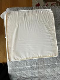 Lettino da viaggio Giordani rosso e blu con materasso pieghevole spesso con sacca realizzata su misura con materiale impermeabile.