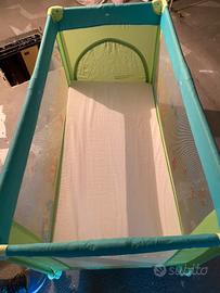 lettino da viaggio Giordani. La porta laterale con chiusura a zip consente al bimbo di entrare nel lettino in autonomia. Pareti traforate per una maggiore aerazione e per sorvegliare facilmente il sonno del bimbo. Chiusura salvaspazio a ombrello, due ruote ideali per gli spostamenti. Materassino di base e materassino imbottito, borsa per il trasporto in dotazione. consegna a Roma o Viterbo