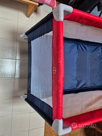 Lettino da viaggio Giordani Travel easy da 0 a 4 anni circa. Misure: aperto cm 66x125x74h, chiuso 20x74, peso 8,2 kg. Venduto con materasso Giordani cm 120x60x11h. Compreso nel prezzo coprimaterasso, piumino, cuscino e completo letto in ottime condizioni.
