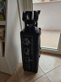 Si richiude comodamente e può essere trasportato grazie alla maniglia.