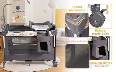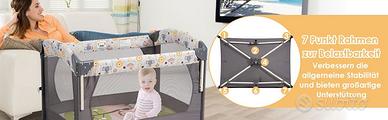Lettino da viaggio, da 0/36 mesi , con secondo strato per i bimbi da 0/6 mesi, fasciatoio, carillon con peluche appesi, Porta oggetti e infine puo diventare un box per bambini, comodo da spostare perche ha due ruote , si apre e si chiude con pochi gesti , leggero e poco ingombrante chiuso è salva spazio. È nuovo comprato montato e rimesso nello scatolo , pagato circa 140,00€ Rivendi a 100,00€