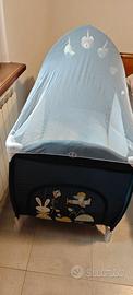 Vendo lettino da viaggio CAM dotato di fasciatoio, cappotta, zanzariera e giochini di peluche. Ha inoltre una porticina a cerniera in fondo e una tasca portaoggetti in cima. Compreso nel prezzo anche un materasso non da viaggio. Condizioni pari la nuovo. Prezzo 80€