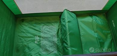 Lettino completo di borsa per il trasporto, scatolone, tappeto da base (va aggiunto un materassino, che non è incluso fin dall'origine).