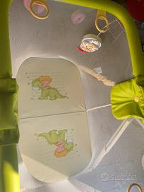 Lettino da viaggio in buone condizioni. Usato . Richiudibile, pratico da utilizzare. Regalo simpatico carillon a forma di gatto e materasso