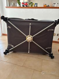 Pratico lettino da viaggio utilizzabile fino ai 3 anni del bimbo che trasforma, in un istante, lo spazio a disposizione in una cameretta dove fare dolci sogni. L’apertura e la chiusura con una sola mano e il design elegante, lo rendono un accessorio da viaggio unico e funzionale. Realizzato in materiali ultra traspiranti, fondo, pareti laterali e materassino sono realizzati in rete per un perfetto passaggio dell’aria. Possibilità all’inizio di essere utilizzata con la struttura della culla posta all'altezza superiore così i piccoli bebè potranno stare più vicini a mamma e papà, successivamente diventa un lettino più ampio semplicemente spostando in basso il materasso. Dimensioni aperto: L.77 x P.105,6 x H.74,5 cm. Dimensioni chiuso: L.28 x P.34 x H.86 cm. Peso: 10 kg. Come nuovo!